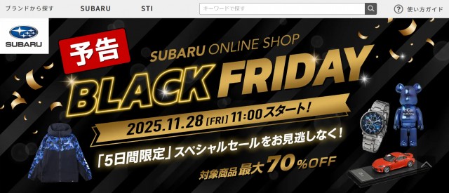 今回はなんとSUBARUのオンラインショップにてブラックフライデーを開催いたします!