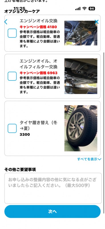 追加がある場合はその他ご要望から選んでいただくか、追加のご記入をお願いいたします。