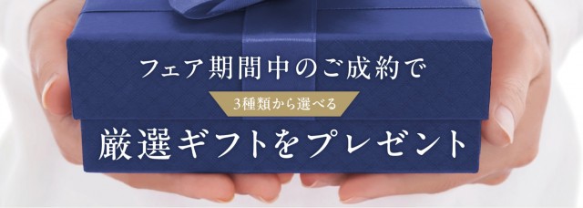 フェア期間中のご成約で3種類から選べる厳選ギフトをプレゼントいたします。