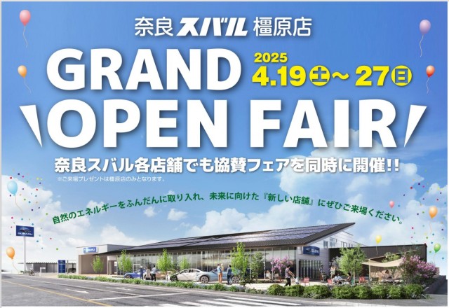GRAND OPEN FAIRは橿原店だけでなく、奈良スバル各店舗でも協賛フェアを同時開催!