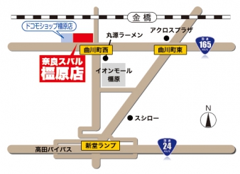 橿原バイパスを南下し「曲川東」交差点右折後約500m