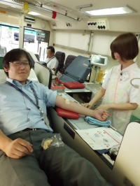 営業中嶋さんも献血中です。