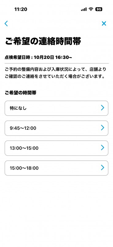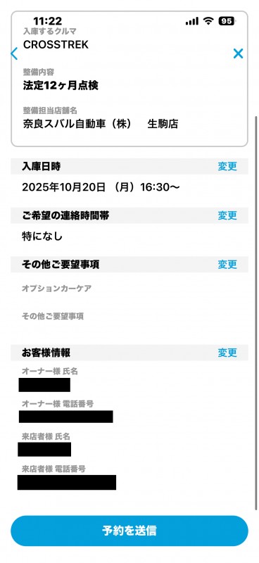 最後に確認画面が出てきますので、追加のご要望がなければ予約を送信して下さい。